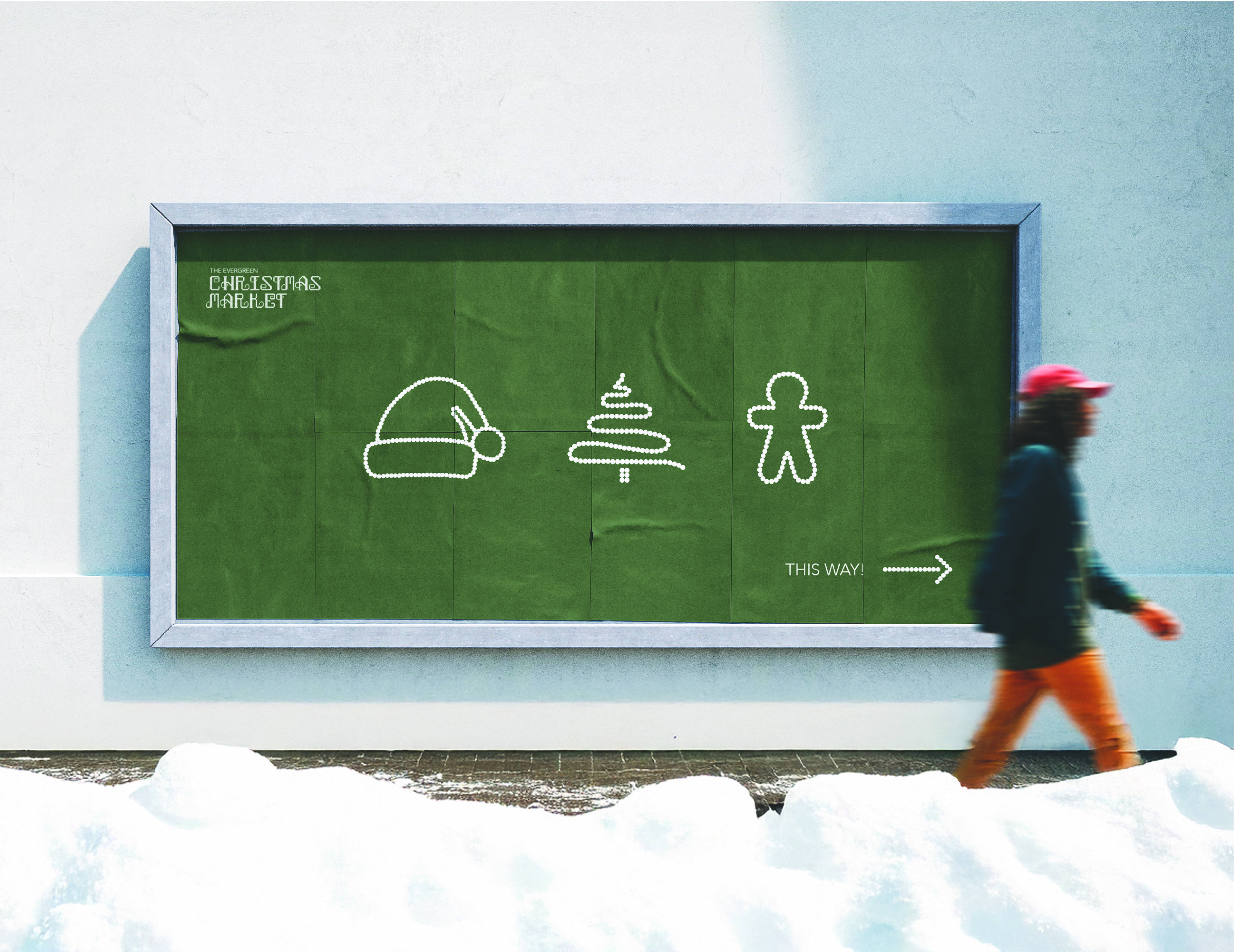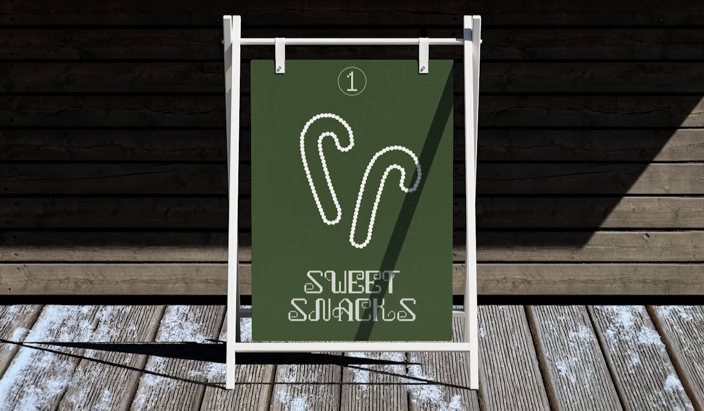 CHRISTMAS MARKET, A DECORATIVE DISPLAY FONT CREATED FOR THE VISUAL IDENTITY OF THE EVERGREEN CHRISTMAS MARKET. DESIGNED TO CREATE ATMOSPHERE INSTEAD OF FUNTION AS A FONT. ITS PURPOSE IS TO COMMUNICATE A FESTIVE SPIRIT ASSOCIATED WITH WINTER MARKETS. THE DOTTED STRUCTURE RESEMBLES ILLUMINATED CHRISTMAS LIGHTS AND ORNAMENTS WHICH ARE CONNECTED TO A COZY AND TRADITIONAL MOOD. THE FONT IS MEANT TO BE USED IN LARGE-SCALE CONTEXTS, SUCH AS POSTERS OR SIGNAGE. ALL OF THE DESIGN DECISIONS WERE MADE TO ENHANCE AN EMOTIONAL CONNECTION TO THE CHRISTMAS SPIRIT.